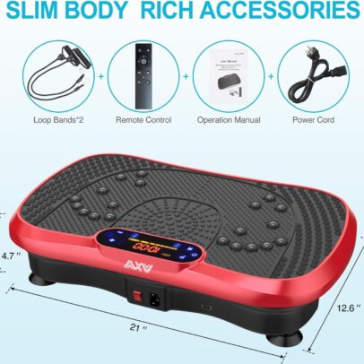 ✅WHY WE CHOOSE AXV VIBRATION PLATE: Can be connected to phone via BT and used as BT speaker; Magnet health massage function; LED display shows time, speed and burnt fat making your workout visible; Compact size can be used anywhere & easy to carry and store; Anti-slip coating designed;Enhanced upgraded Ergonomic design shell ensures more durability and stability; Comes with Remote control ,Resistance Bands and detailed manual…everything you need.