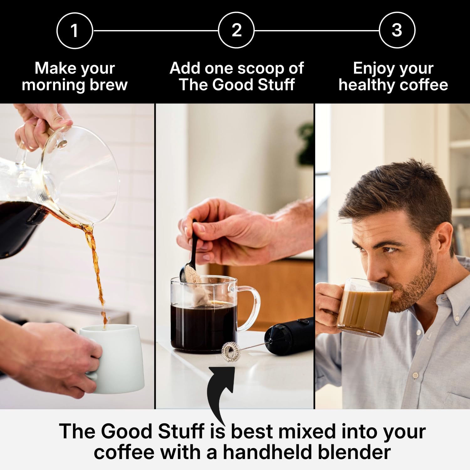 SUPERCHARGE YOUR MORNING BREW – The Good Stuff is a coffee supplement that will supercharge the natural benefits of your morning brew, promote focus, and reduce the caffeine jitters. Sustainable longevity requires solid routines, which is why we recommend using The Good Stuff daily for 30 days for best results.