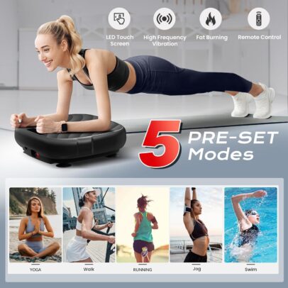 CONVENIENT OPERATION AND EASY STORAGE: The vibration plate supports remote control operation and the LED display clearly shows time and speed, allowing you to monitor your workout progress at any time. Anti-slip design and durable casing ensure the stability and longevity of the machine. Compact size saves space and is easy to carry and store