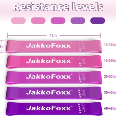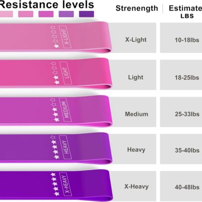 This set includes 5 rubber resistance bands with increasing levels of resistance: