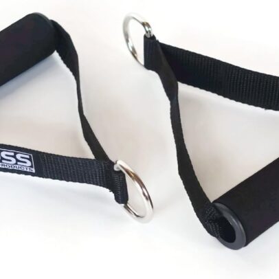 Constructed of heavy duty nylon webbing with soft grip foam handles that are soft yet firm for comfort and control during exercises. Stainless Steel D-Ring attachments ensure an easy and reliable connection to resistance bands and cable machines.