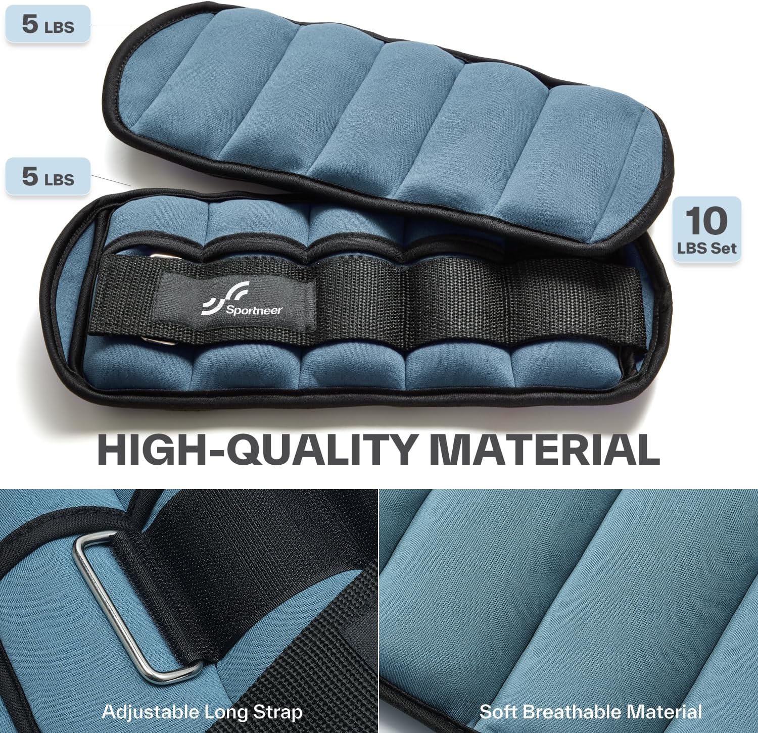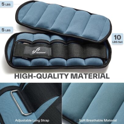 QUALITY & COMFORT: The Sportneer ankle weights were made of neoprene exterior, reinforced stitching, sturdy outer trim and moisture absorbing material inside, soft, breathable and comfortable, you could feel its softness when hold in your hands.