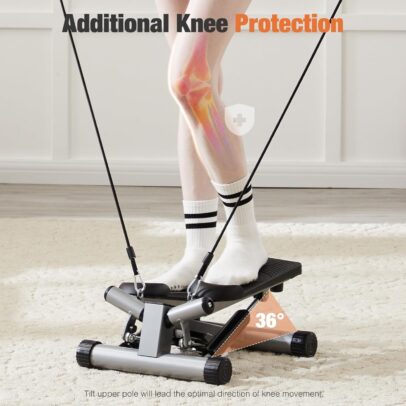 Knee-Friendly Design for Optimal Safety: Features a unique 21° tilt in the upper pole, our mini stepper guides your knees in the most ergonomic direction possible. This thoughtful design reduces strain on your knee joints and minimizes the risk of injuries, ensuring a safe and enjoyable workout session every time.