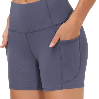 • THE GYM PEOPLE Women's High Waist Workout Shorts Breathable Dolphin Split Elastic Lounge Yoga Shorts