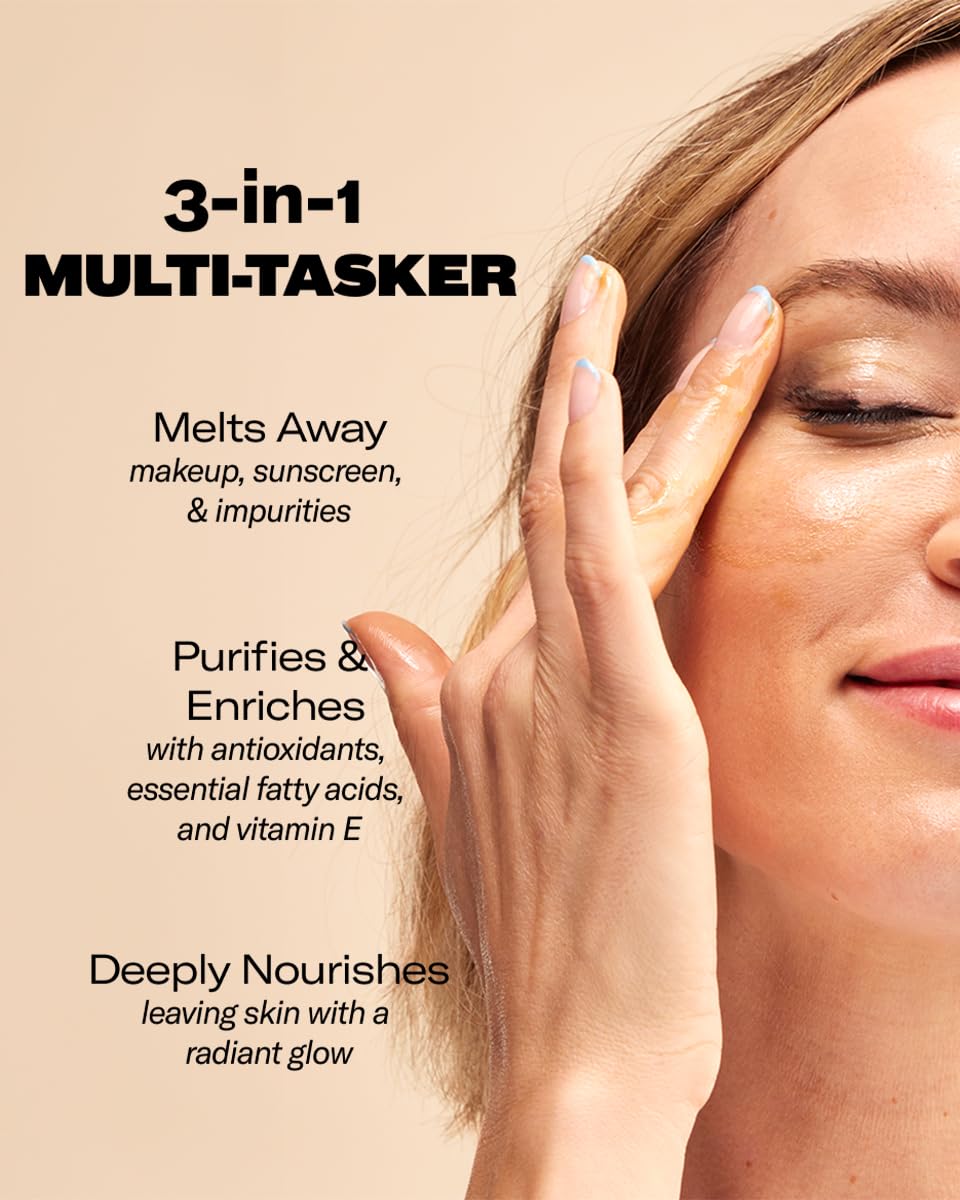 CLEANSING & NOURISHING: Our sorbet soft cleansing balm and makeup remover rapidly works to wash away all traces of long-wear formulas and water-resistant sunscreens, while gently removing excess oils and impurities. Oil Cleanser that dissolves makeup and sunscreen, while nourishing your skin.