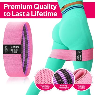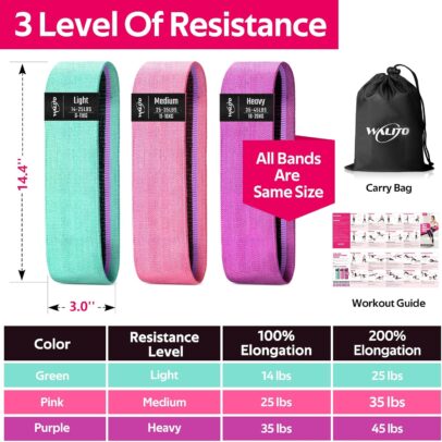 【Suitable for Many Exercise】- Our Exercise bands are ideal for assisting in P90x, CrossFit, Yoga, Insanity, Pilates, Hot Yoga, and Beach Body workouts. Soft fabric resistance bands will NOT slide or roll up during workouts,the best choice for sports and fitness.